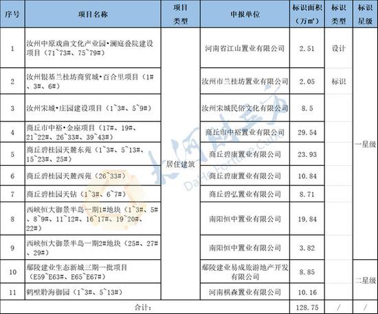 来源:大河报·大河财立方 原标题:河南11个设计标识项目获绿色建筑评价 名单 大河财立方消息 9月29日,河南省住建厅公示2019年度第三批绿色建筑评价标识项目名单。经审定,“商丘碧桂园天钻(1~3#、6~7#)和鹤壁聆海御园(1~3#、5~13#)”等11个设计标识项目获绿色建筑评价,标识面积合计128.75万平米。公示截止日期2019年10月15日。 据悉,绿色建筑是指在全寿命期内,最大限度地节约资源(节能、节地、节水、节材)、保护环境、减少污染,为人们提供健康、适用和高效的使用空间,与自然和谐共生的建筑。绿色建筑分为了一星、二星、三星,星级越高越“绿色”。