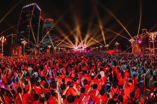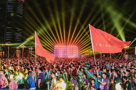 ![]() 10月26日晚,第五届集美新城荧光夜跑活动正式开跑。来自全省各地的14个跑团和万余名跑者化作赛道上最“亮”的仔~点亮了集美新城的城市夜空,在清凉的夜色中,共同度过了一个难忘的荧光狂欢之夜。正式开跑前,万余名跑者组成“合唱团”在市民广场共同演唱《红旗飘飘》,展现出集美人民喜迎新中国70华诞的情怀! ![]() 作为我市除国际马拉松之外规模最大的全民健身体育活动,集美新城荧光夜跑自2015年首度举办以来,参与的“人气”和活动的“名气”年年看涨。前四届荧光夜跑共吸引近6万人参加,并先后获评“中国十佳节庆活动奖”和“厦门文化产业年度风云榜年度区街活动”,逐渐成为“人文集美”的“自主品牌”活动和重要名片之一。 2019莲花首岸&莲花国际集美新城荧光夜跑继续以“新时代、新征程、新集美”为主题,与祖国共奋进,奔跑追梦,努力建设高素质高颜值跨岛发展最美新市区。 互动游园+学习强国挑战赛 趣味与知识双丰收 今年的荧光夜跑分为三大部分:互动游园会、五公里荧光夜跑和终极演唱会。下午3:30分开始,互动游园会正式在集美新城市民广场拉开帷幕,现场互动体验区设置了海底探宝、涂鸦王国、两人三足等等亲子小游戏,以及单车慢骑、消灭气球等团队游戏,号召大家放下手机,和亲朋好友一起“亲密互动”。同时,来自集美各镇街的广场舞队伍也在市民广场PK舞技、宣传垃圾分类。舞姿优美,动作活泼,尽显传统文化之美。台下的观众纷纷点赞:“没想到垃圾分类还能编成这么生动的舞蹈。” ![]() 另外,为了拓宽大家的知识面,紧跟党的步伐,走好脚下的路,当一名与时俱进的好市民。大家在互动游园区开展的“学习强国挑战赛”争相竞答。其中,一位答题积极正确率最高的张姐说,她平时就有在平台上学习,目前积分已有10532分,通过“学习强国”平台,丰富了理论知识,对科技方面视频的学习,也提升了科学素养。而党务方面的学习,增强了个人党性的修养。 本次活动由中共厦门市集美区委宣传部、集美新城片区指挥部办公室、集美区文化和旅游局指导,厦门市天下集美文广传媒有限公司主办,厦门市东区开发有限公司总冠名。 以跑为媒+音乐筑梦 文体融合焕发新姿 晚上7时万人准时开跑,场面蔚为壮观,一时间,赛道上充满了火爆的气息。跑者们手戴荧光棒圈,脸上、身上涂着五颜六色的荧光漆彩绘,沿着赛道夜跑,秋日的凉意也抵不过跑者们的热情。诚毅东路、新洲大桥和软件园三期组成的“高颜值夜跑路线” 上又一次亮起荧光动线。 而赛道上“每一公里,皆是记忆”的赛道装置,再现了2015年到2018年夜跑的精彩瞬间,不少跑者表示:看到这些装置,4年前夜跑第一年开跑的情景,依然颇感振奋,用脚步丈量新城之美的那些记忆还历历在目。 ![]() 享受完酣畅淋漓的五公里,终极演唱会上,人气爆棚的新生乐队MINSTA音乐厂牌、拾青乐队以及超人气乐团少安毋躁、活人俱乐部助阵,“音乐诗人”游鸿明倾情献唱,绚丽的舞台,璀璨的灯光,震撼的音响,终极演唱会引爆了这场狂欢的高潮。 ![]() 此外,本届夜跑延续前几届“为爱而跑”的公益特色,联合每一位跑者,将脚步转换为爱心,向社会公益捐赠;以及现场的爱心义诊公益服务,力求将慈善进行到底;滨海幼儿园组织亲子家庭到现场分发垃圾袋与垃圾分类宣传单,培养小朋友的环保意识;活动还继续坚持践行环保公约,倡导“垃圾不落地”,号召每一位跑友共同呵护集美之美,守护生态守护高颜值,以实际行动涵养 “人文集美”品格内涵。 荧光装置艺术+主题灯光秀 献礼70华诞和夜跑5周年 2019年,是新中国成立70周年,70年来,新中国筚路蓝缕,风雨兼程,在峥嵘岁月中砥砺前行。今年的夜跑游园互动区以展示好、宣传好新中国波澜壮阔的发展历程,同时也展出新城建设近10年来,集美的文化、文艺精品,向市民朋友们展示人文集美的感染力。现场有许多市民朋友们还在便利贴墙上写下对祖国的祝福;在拍照墙上留下了最佳笑容…… 值得一提的是,为庆祝新中国成立70周年,2019集美新城荧光夜跑用光影传递情怀,以灯光语言反映中华人民共和国成立70周年以来特别是改革开放的发展成果,表达集美人民对中华人民共和国成立70周年的衷心祝福。 ![]() 现场灯光秀通过对灯光变化的艺术编排,配以人民群众熟悉的旋律,打造以“荧”庆七十年,“光”耀新集美为主题灯光秀。灯光秀时长约7分钟,分为“序曲、希望之光、改革之光、盛世宏光”三个篇章。其中,第一篇章以呈现白光为主。黑与白,代表初心。充满理想的人们不断聚集到这里,为刚刚成立的新中国披荆斩棘,挥洒热血,与时间赛跑。第二篇章透过节奏的律动和灯光的跳跃,仿佛五湖四海的人已经聚集,欢快的曲调,汇成改革开放的潮涌,穿越40几年的光辉岁月,在变革创新中创造新的精神和力量。来到第三篇章:热烈的红,活力的黄,梦幻的蓝……变幻成10、20、30直至70的数字变幻,未来就这样被打开,一道道彩光像通向未来的彩虹。在光的剧场里,创世纪的剧目正在上演。象征新中国正乘上光的羽翼,奋进新时代。 ![]() 紧接着,万余名市民组成“合唱团”共同演唱《红旗飘飘》。同时,头顶上空缓缓出现巨幅国旗,展现集美人民喜迎新中国70华诞的情怀! 夜跑+夜游 让集美新城“越夜越美丽” 夜游经济作为城市消费的“新蓝海”,近年来越来越受到各地