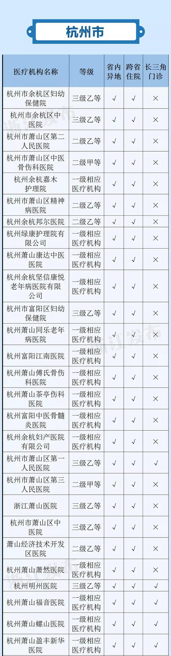 浙江在不断完善省内异地就医直接结算工作的同时,2016年8月正式启动跨省异地就医直接结算工作。截止至2019年9月30日,省内异地开通604家,跨省住院545家,长三角门诊452家。较8月底分别增加了21家、17家、42家。 ![]() ![]() ![]() ![]() ![]() ![]() ![]() ![]() ![]() ![]() ![]() ![]() ![]() ![]() ![]() ![]() ![]() ![]() 关于跨省异地就医直接结算,以下这些你都知道吗? 哪些人群能够从中受益? ★常驻异地工作人员:用人单位派驻异地工作且符合参保地规定的人员; ★异地长期居住人员:在异地居住生活且符合参保地规定的人员; ★异地安置退休人员:退休后在异地定居并且户籍迁入定居地的人员; ★异地转诊人员:符合参保地转诊规定的人员。 如何办理跨省异地就医医保? ★通过参保地医保经办机构,或“浙里办”APP等方式进行备案,经办机构采集必要的信息; ★选择跨省异地就医的省市; ★一定要带上全国统一标准的社会保障卡。 注:完成上述“三步”后,在定点医疗机构名单中选择适合就医的医院即可! 如何获得异地就医的有关信息? ★参保人员可以登录全国社保网上查询系统(http://si.12333.gov.cn)查询已开通的统筹区、全国联网异地定点医疗机构、参保人本人备案情况、参保人跨省异地就医费用等; ★也可以拨打参保地医保经办机构的电话咨询。 ![]() (点击可查看大图) 已经在参保地完成备案的人员,可以在网站上注册,完成实名验证后,即可在线查询本人备案登记和异地就医结算信息。 |