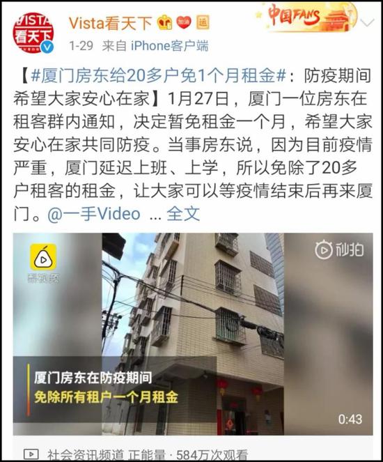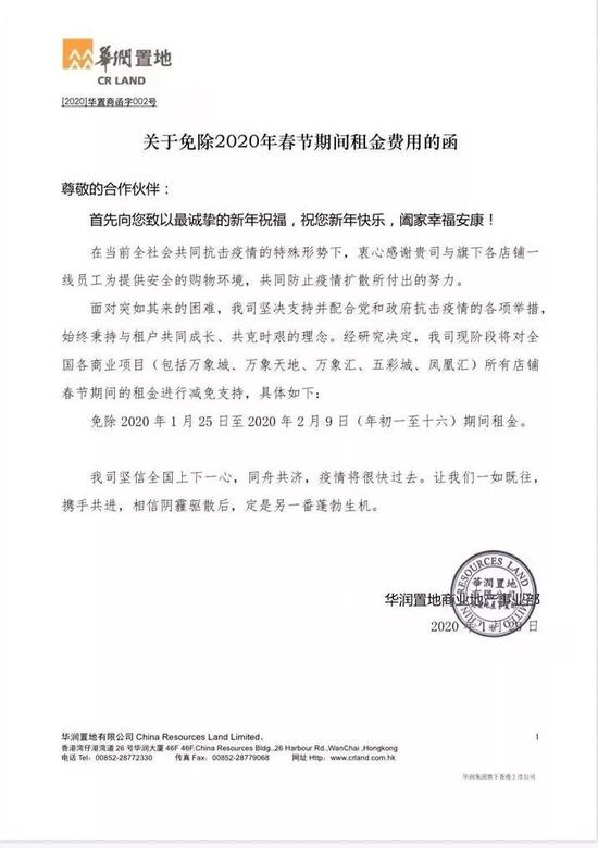 东湖区新型冠状病毒感染的肺炎疫情防控指挥部 致全区广大经营用房业主(房东)的 倡议书 2020年伊始,突如其来的新冠肺炎疫情打乱了所有人的生活步调。疫情来势汹汹,迅速蔓延。为了切实阻断疫情传播途径,全国上下万众一心、众志成城,掀起了一场声势浩大的疫情防控战役。 这个春节,街上没有行人如织,商场里没有顾客如云,往日热闹的场景、亲密的相聚,被疫情阻隔,被冷清取代。在疫情中,人们的距离远了,但心却靠得更紧。这个春节,刷屏的是“中国加油”“武汉加油”,是一方有难八方支援,是全国各地医疗团队最美的“逆行”,是企业和个人积极捐款捐物,是来自社会各界的爱心源源不断地飞到需要的地方…… 为了给疫情防控尽一份力,广大企业和个体工商户积极响应号召,毅然停产停业,推迟复工复产,有效减少了人员流通,避免了群体性聚集,努力克服疫情防控带来的经济损失,用真心、用坚守、用行动,展现了强烈的家国情怀和责任担当。 经过全市人民的共同努力,我市多地连续多日新增病例为零,这样的成果是喜人的,可付出的牺牲与代价也是巨大的。 人们被疫情禁足于家中,不仅生活受到了影响,经济也仿佛被按下了暂停键。这个冬天,餐饮娱乐、酒店旅游、批发零售、交通运输等等,如遇冰封、损失惨重,有的甚至面临生存危机。承受这些的是千千万万的企业和个体工商户,是和他们相关的千千万万个家庭。他们是经济发展的推动者、市场繁荣的缔造者、就业岗位的创造者,他们经营得好与坏,关系着整个经济的复苏和社会民生的改善。 为了帮助企业和个体工商户渡过此次难关,国家、省、市、区各级纷纷出台复工复产优惠政策,帮助减轻负担,提升投资热情,助力企业克服困难。 全区广大经营用房业主(房东),你们是与企业、个体工商户唇齿相依、休戚与共的合作伙伴,越是艰难时刻,越显示出守望相助的力量,只有大家同舟共济、共担损失,才能共克时艰、共渡难关。在此,我们郑重倡议:希望大家坚持义利兼顾、以义为先理念,自觉行动起来,在疫情防控期间,积极为承租商务楼宇、商场、店铺、厂房的企业和个体工商户,减免房租,切实减轻租户负担。 如果租赁双方能友好协商、减免房租,勠力同心、互助互利,疫情过后,我们将一同迎来春暖花开的明天! 2020年3月3日 疫情开始之后,不少房东主动免除租户的部分租金,献上了他们的爱心和善举。 ![]() 这位来自厦门的房东,也是慷慨相助,给20多户租客减免了一个月的房租。 ![]() 除了个人房东有所行动,不少企业也出台了各项租金减免政策。让商铺租户们减轻了不小压力。 比如万达集团就为广场商户减免租金和物业费超过40亿元,央视新闻联播也对此进行了报道。 ![]() 还有华润置业、保利商业等也都主动减免了疫情期间的部分租金。众志成城保供应,我们看到了这些企业都在行动。 ![]() 所以,这个倡议你支持吗? 房东是否减免房租你怎么看? 参与投票告诉我们 支持的转发出去! 希望大家早日迎来明媚的春天 来源:南昌晚报综合南昌东湖区发布